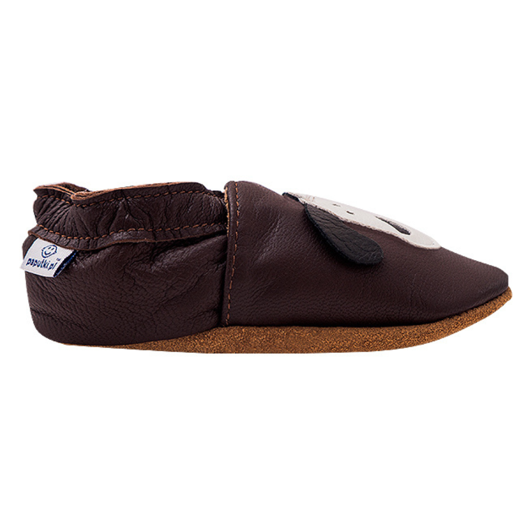 "Paputki z pieskiem są rewelacyjne. Brązowy kolor świetnie ukrywa zabrudzenia, a skóra jest tak miękka, że synek nie chce ich zdejmować. Bardzo polecam!"