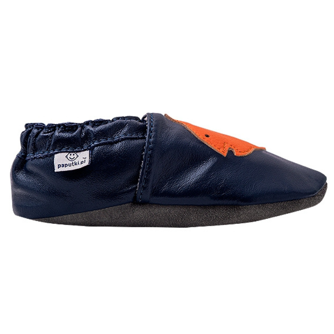 Dlaczego warto postawić na model z rybką? Ponieważ wspiera on naturalny rozwój stopy w najważniejszym okresie wzrostu. Dzięki konstrukcji barefoot, nasze granatowe paputki pozwalają palcom na swobodne rozstawienie, a całej stopie na naturalną pracę, jak podczas chodzenia boso. Miękka skóra jagnięca z polskich garbarni otula stopę, zapewniając jej bezpieczeństwo i niespotykany komfort przez cały dzień.