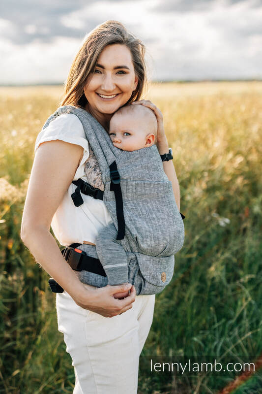 Nosidło jest odpowiednie dla dzieci od wagi 3,5 kg. Dzięki regulacji panelu bezpiecznie otulisz nim mniejszego maluszka.