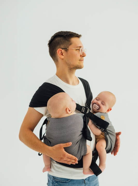 - po rozpięciu pasa biodrowego LennyTwin tworzą sie 2 niezależne nosidła LennyHip!