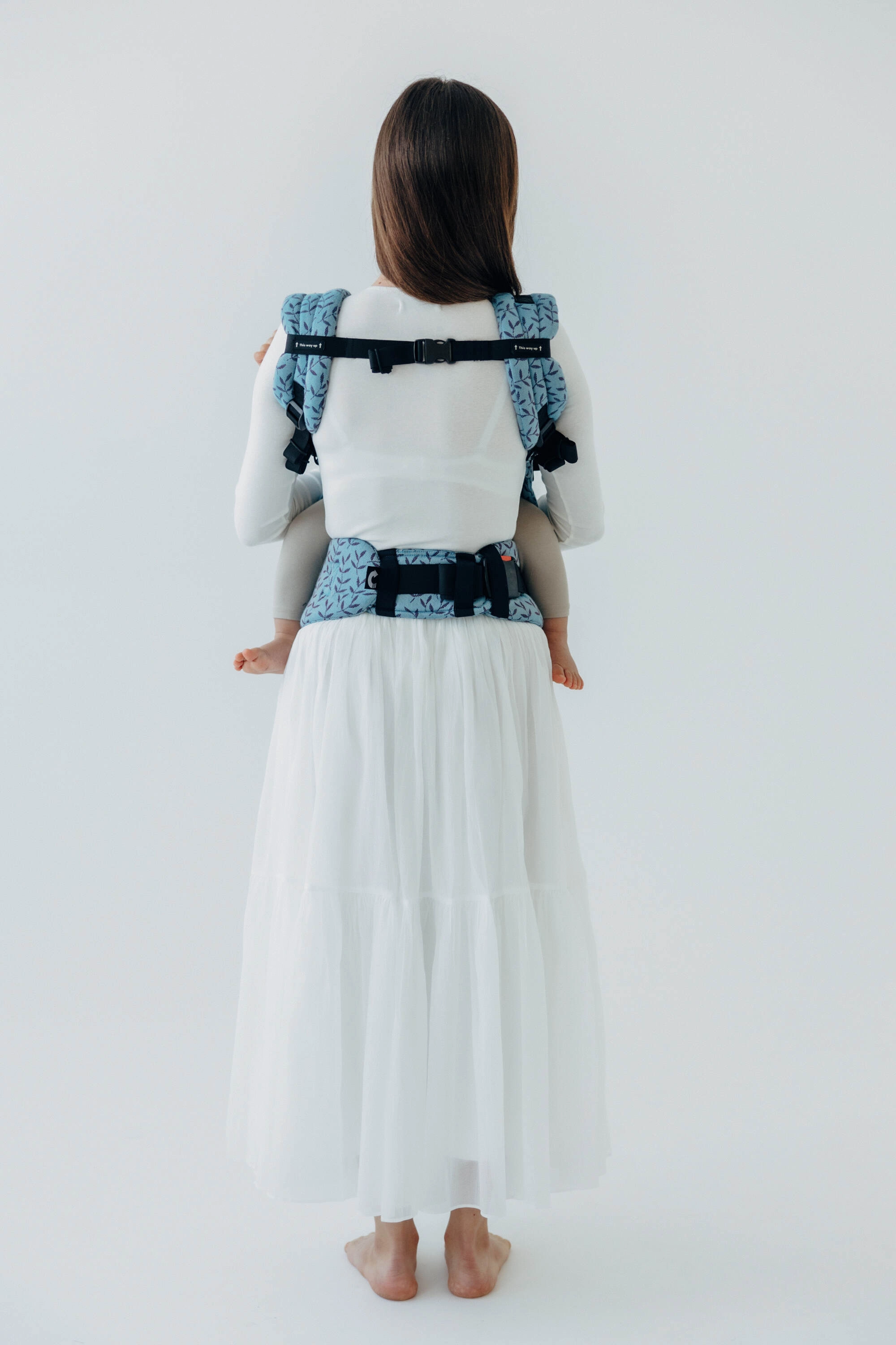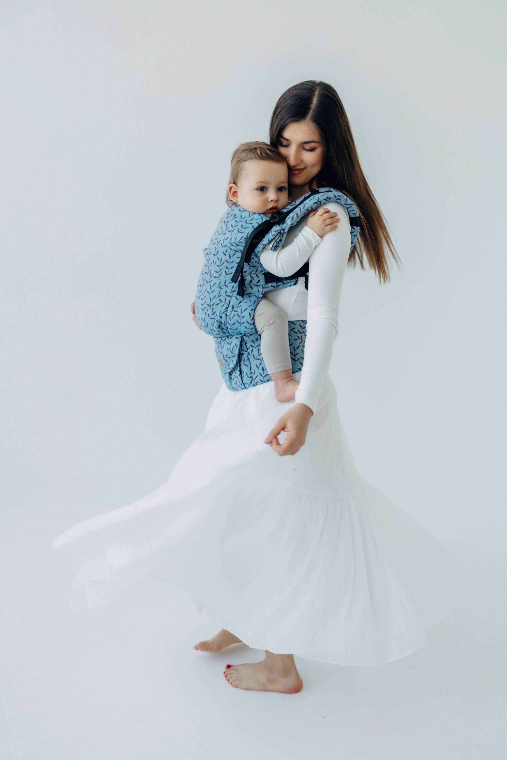 To raj dla maluszków, które potrzebują bezpiecznej pozycji żabki (M) i tkaniny, która otula bez ucisku. Bawełna chustowa o gramaturze 250 g/m2 jest wyjątkowo plastyczna i stabilna, więc zapewnia idealne wsparcie kręgosłupa rosnącego niemowlęcia. Płynna regulacja nosidełka gwarantuje, że oparcie precyzyjnie podtrzyma małe ciało aż do osiągnięcia przez nie ok. 104 cm wzrostu.