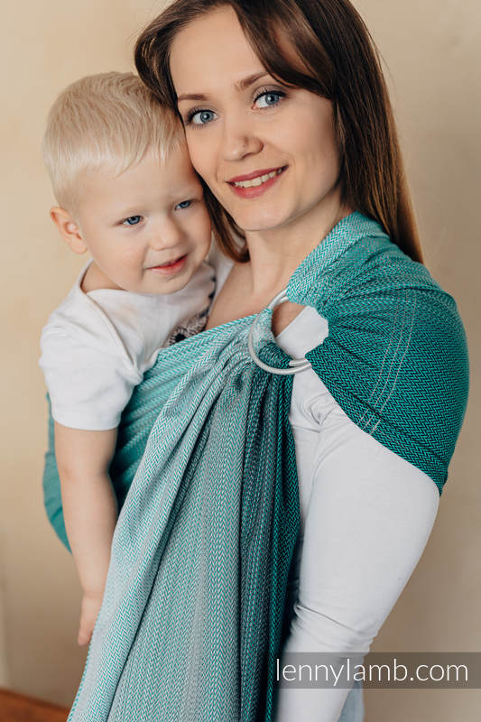 ★ Precyzyjne dociąganie Efekt ombre (różne odcienie na krawędziach) pozwala rodzicowi błyskawicznie zidentyfikować, którą część chusty należy dociągnąć przez kółka.