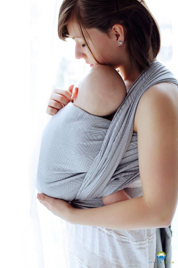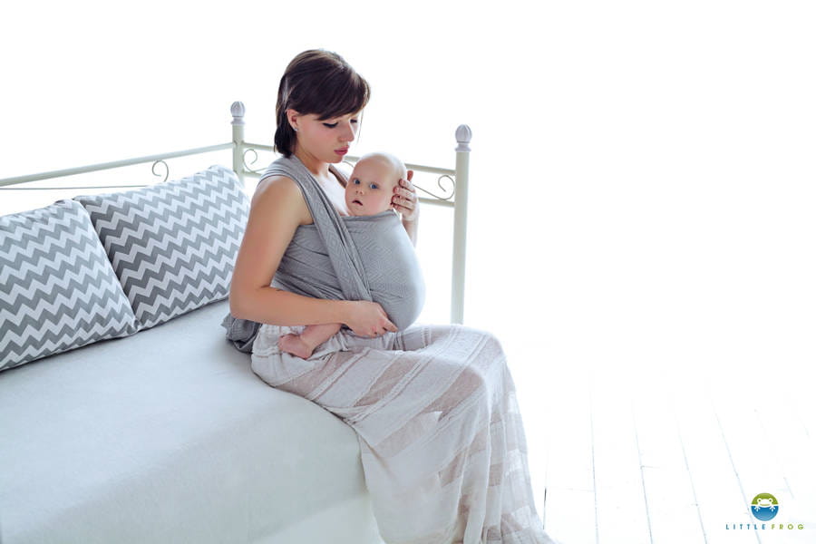 Prawidłowe zawiązanie chusty Little Frog Grey Cube pozwala na uzyskanie optymalnej pozycji dla zdrowego rozwoju maluszka. W tym wiązaniu dziecko zachowuje: