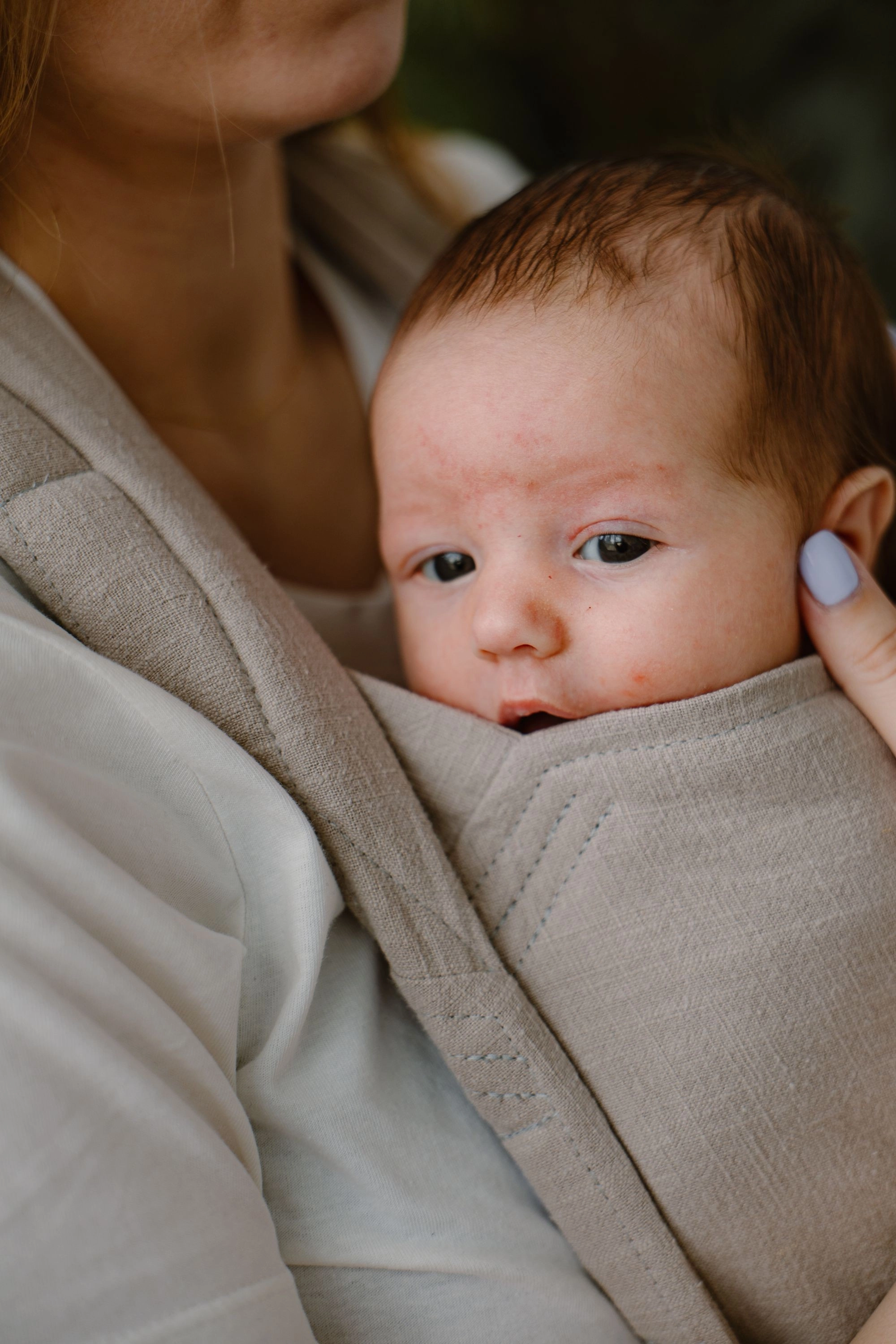 Dlaczego wybrałam dla Ciebie 100% len? Bo to materiał, który nie ma sobie równych w noszeniu dzieci, zwłaszcza jeśli cenisz naturalność i przewiewność. Jest wytrzymały i antyalergiczny, świetnie oddycha i dopasowuje się do ciała dziecka, zapewniając komfort termiczny o każdej porze roku.